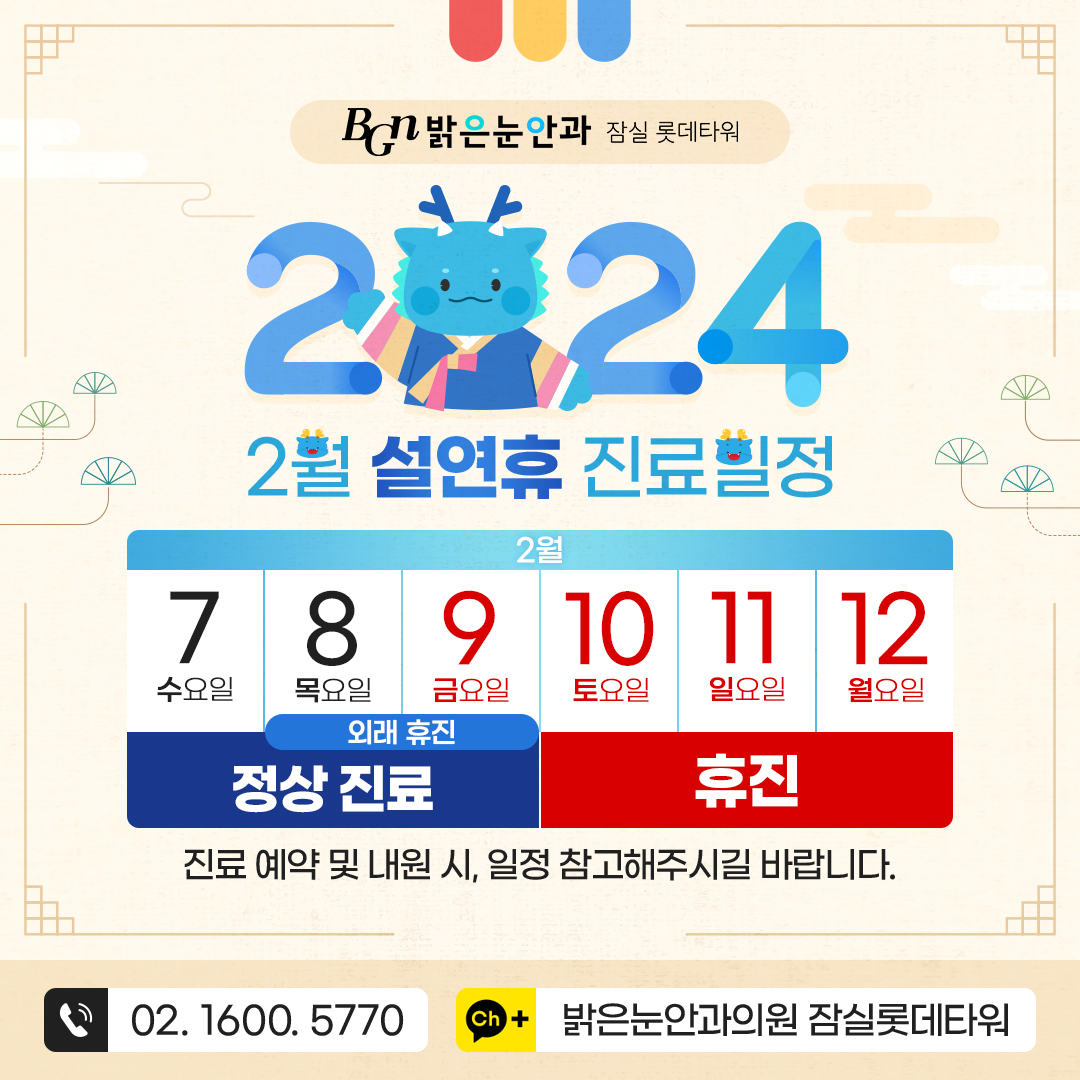 2024년 2월 설연휴 진료 일정을 안내드리오니